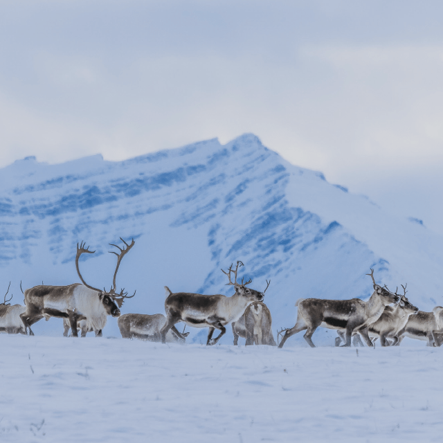 Tous les caribous se déplacent en groupe au fil des saisons. Ils marchent sur de grandes distances entre leur habitat d’été et leur habitat d’hiver. Ces déplacements se nomment des migrations. Certains troupeaux parcourent jusqu’à 6 000 km chaque année !