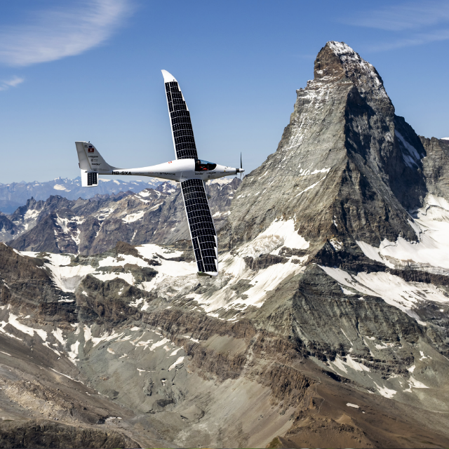 Sur les ailes de l’avion, des panneaux solaires transforment les rayons du soleil en électricité.